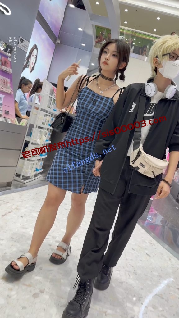 【KFC】精神小妹和黄毛男友逛街·露背吊带裙白色内内前后CD【1V】【369M】
