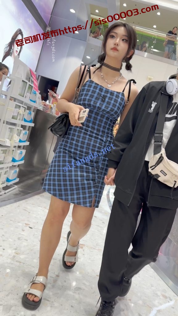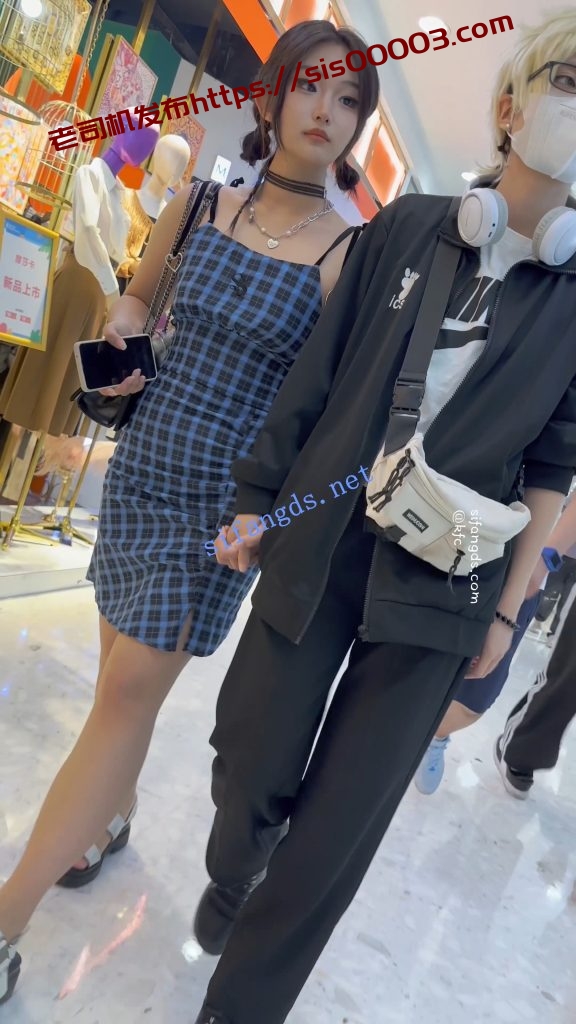 •  精神小妹和黄毛男友逛街·露背吊带裙白色内内前后CD