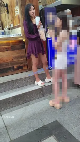 •  紫色连衣裙小姐姐和闺蜜排队买东西,黄色内内