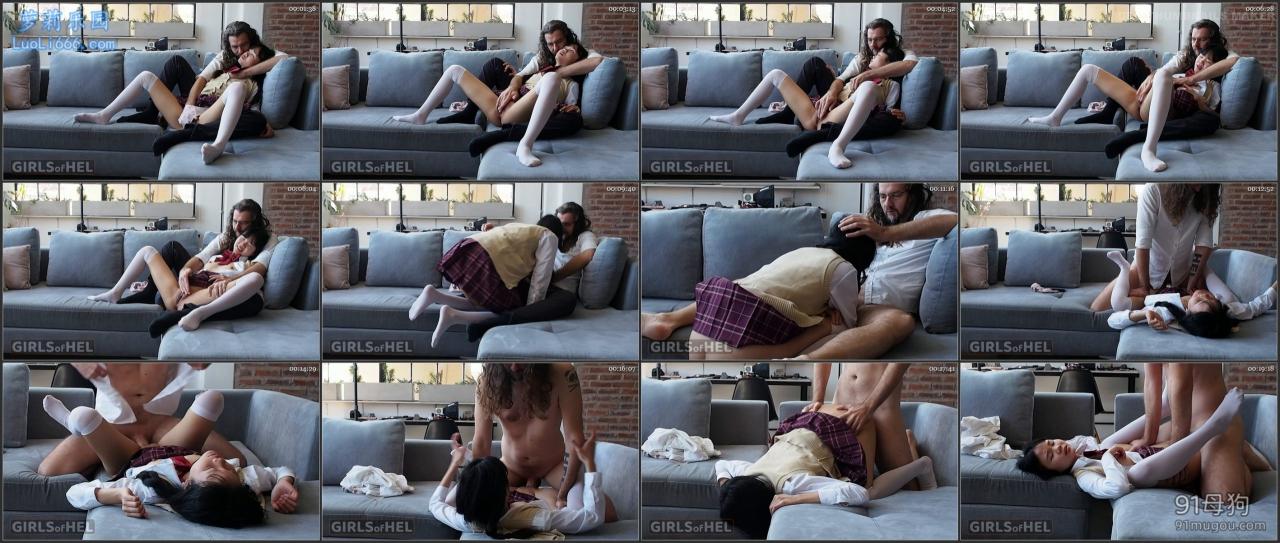 亚洲女学生穿着校服被打了屁股、被手指插入和被强奸 – Baebi Hel