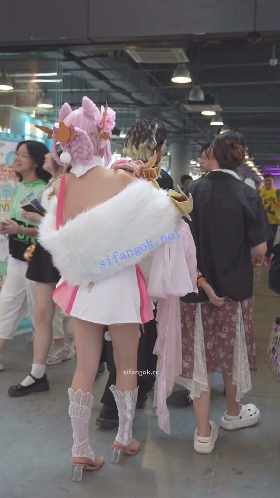 • 极品超短露背裙cos小姐姐,有不少路人找她合影,裙子非常短,弯腰的时候露出半个屁股,上前抄底果然是没穿安全裤,浅黄窄内带翅膀,皮肤光滑屁股稍微有点黑,聊天的时候弯腰,趁机赶快把镜头贴上去拍摄,有几个摄影请她去自己的摊位拍照,估计也是看到小姐姐的裙子容易走光,趁机拍内裤。